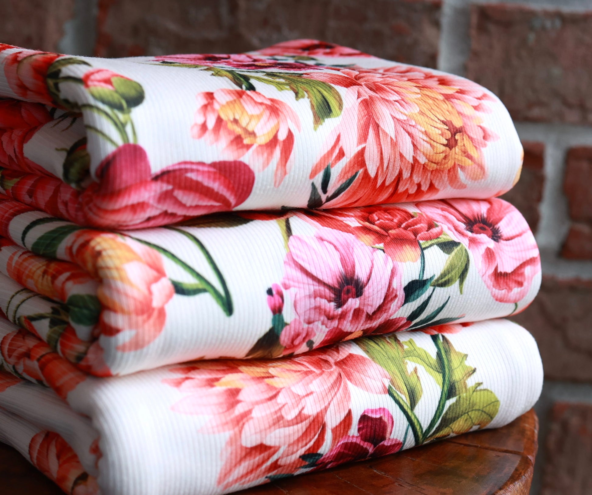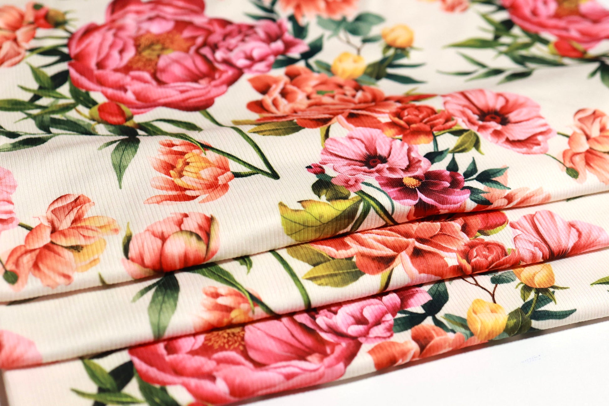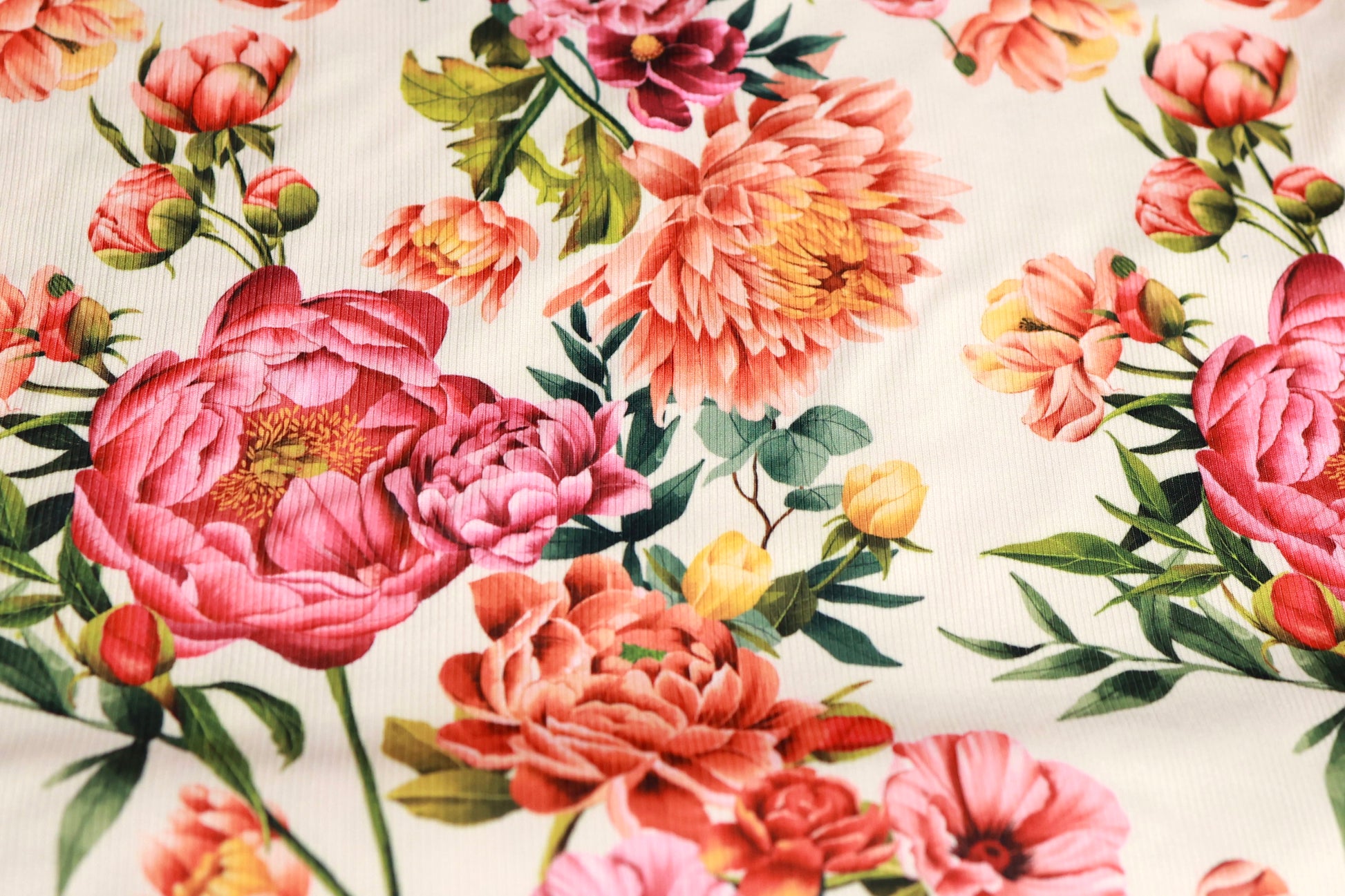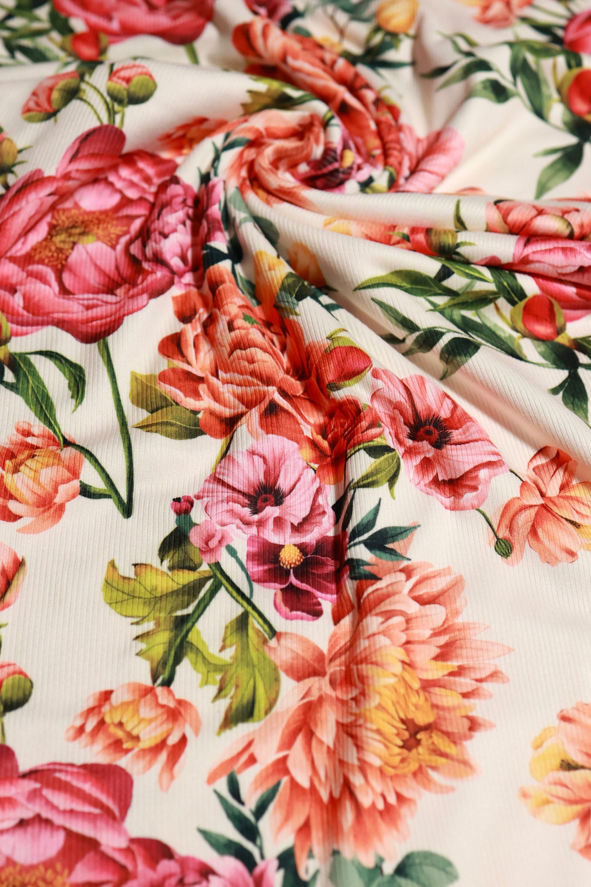 (Rib) Coral Floral On Cream