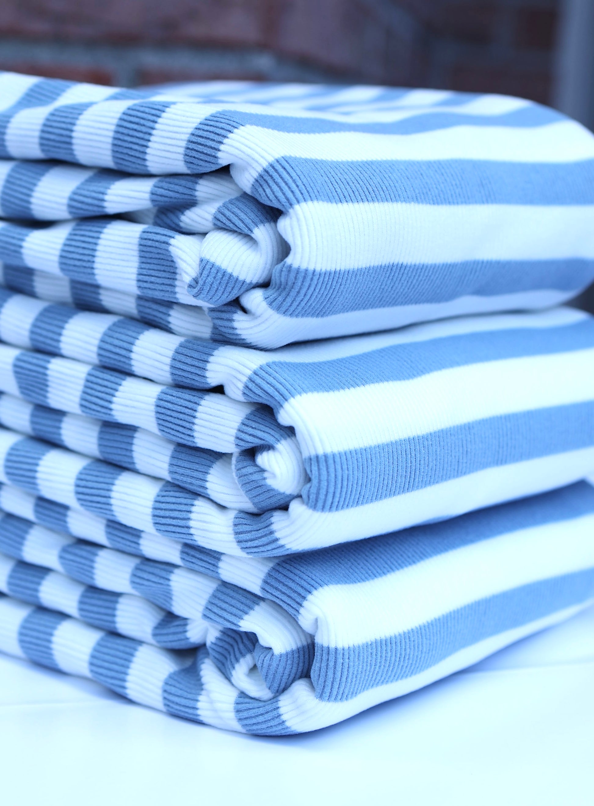 (Rib Fleece) Stripes Denim & White